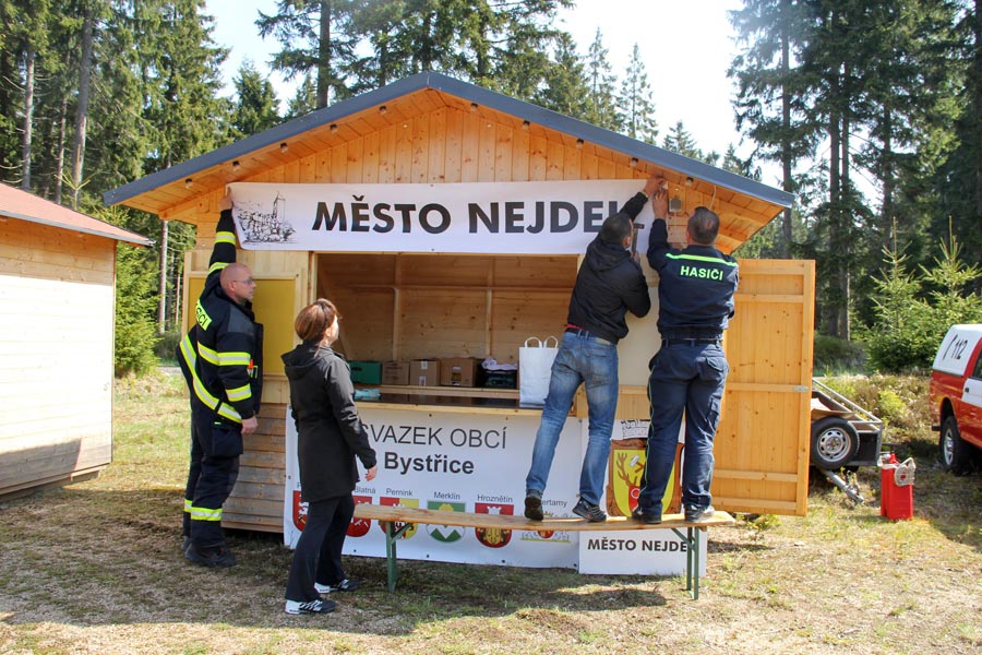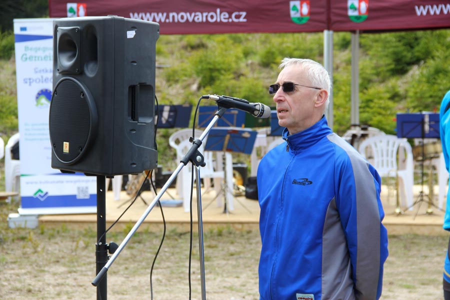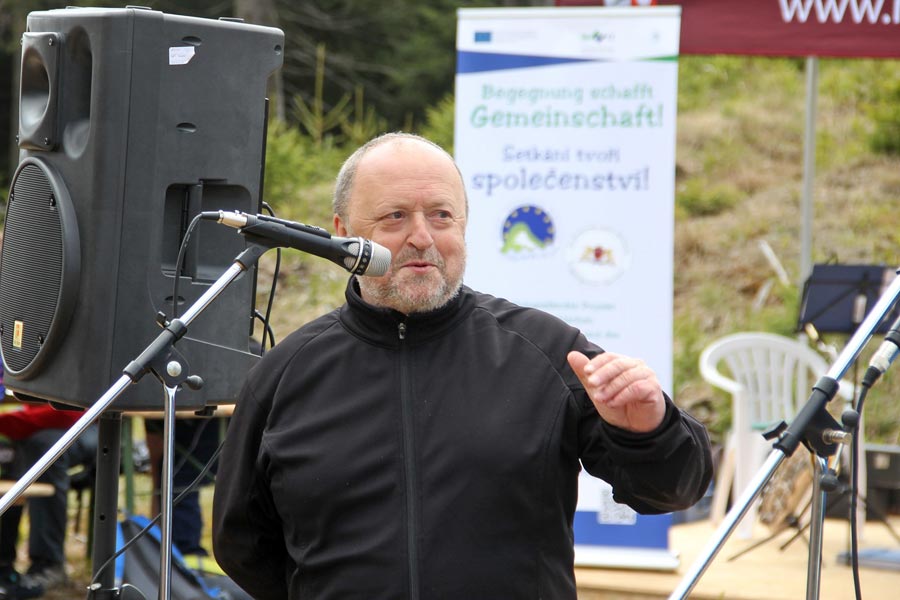 Následně bylo setkání cyklistů oficiálně zahájeno panem Hans-Uwe Haasem (Předseda německo-českého kulturního spolku Potok e. V. z obce Schneeberg) a panem Rudolfem Löfflerem (předseda Krušnohorského spolku Abertamy), kteří se svými spolky toto setkání cyklistů v rámci příhraničního projektu "Begegnung schafft Gemeinschaft" (Setkání tvoří komunitu) zorganizovali. Mimo to hosty pozdravil pan Lubomír Vítek (starosta města Nejdek) a pan Uwe Staab (starosta města Eibenstock). Jejich krátké projevy poukazovaly na význam "Karlovy stezky" i následného projektu "Karlova stezka II".