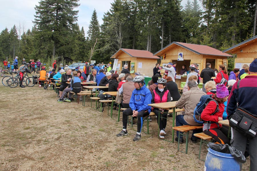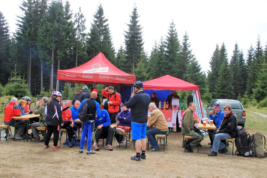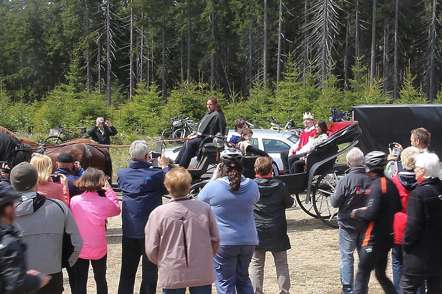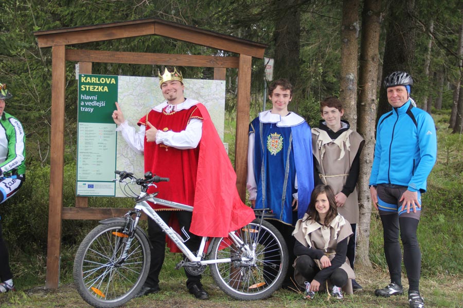 Za krásného slunečného počasí, příjemné nabídky rozmanitého občerstvení se následně vyvinulo družné společné setkání, při kterém nešlo jen o výlet na kole, ale také o navázání nových přátelství. Na informačních stáncích turistického informačního centra Eibenstock, informačního centra Nejdek, spolku běžců maratonu Eibenstock i spolku "Radost z cyklistiky" měli hosté možnost získat obsáhlé informace týkající se tématu cyklistika a dalších turistických nabídek v příhraničním regionu. Ohlášený čestný host se nakonec ukázal jako císař Karel IV., jehož narozeniny se 14. května 2016 oslavily po sedmi sté. Navzdory celostátním oslavám tohoto památného dne v České republice, si kdysi významný český král a římsko-německý císař (hraný jedním českým studentem) nenechal ujít příležitost přijet za všeobecné pozornosti s kočárem a doprovodem na setkání cyklistů. Jeho "poddaní" poděkovali jmenovci "Karlovy stezky" (království pro kolo) speciálně zhotoveným narozeninovým dortem. Na otázku, jak je možné, že po 700 letech vypadá stále tak mladě, odpověděla jeho výsost, že jej v kondici udržuje cyklistika v krásném prostředí Krušných hor, především na trase "Karlovy stezky". Kdo by s tím nesouhlasil?!