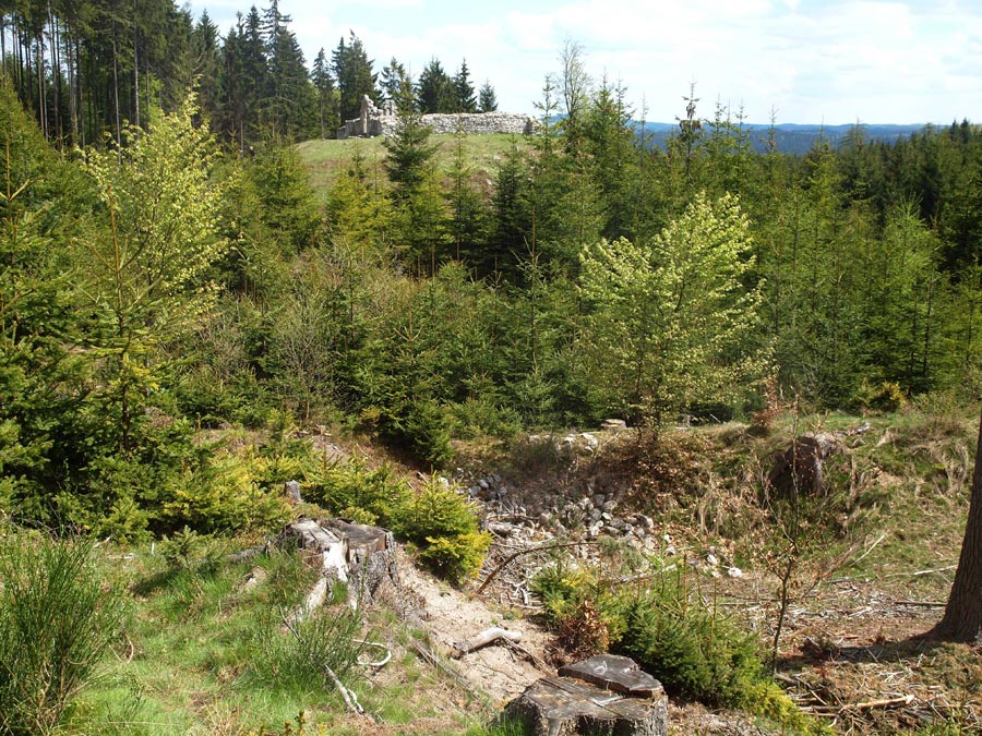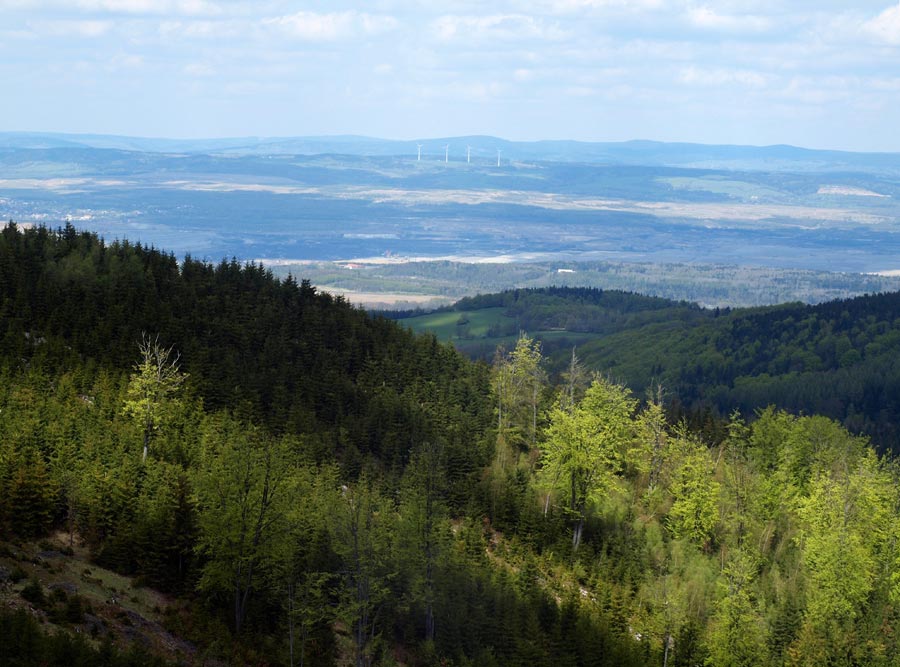 nás tentokrát zavedl do Slavkovského lesa, nedaleko Sokolova. Celá skupina se srazila v Kraslicích před kostelem. Nejdříve nám Péťa ukázal, jaké možnosti renaturace po ukončení těžby uhlí existují a jak dá krajina nově užívat. Túra začla tentokrát v Hruškové, vedla nás kolem pomníku uranové těžby ke zřícenině kostela sv. Mikuláše. Po malém odpočinku bažinami dál až na horu Krudum, kde stála rozhledna, která nám umožnila nádherný výhled do celého okolí Slavkovského lesa a nechala nás námahu a útrapy rychle zapomenout.