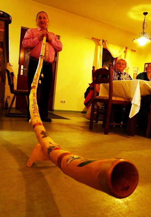 Pan Pöhler hrál na samovyrobeném alpském rohu a nakonec předal jménem různých krušnohorských spolků a soukroumých osob sbírku na akci „Pomoc pro Pepu“, za kterou mu mnohokrát děkujeme a která Pepovi velice pomůže.