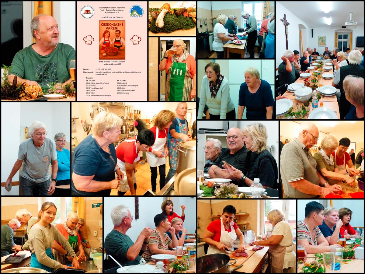 Am Wochenende 10./11.10.2025 trafen wir uns mit dem Erzgebirgsverein Abertamy in Pernink zum gemeinsamen Kochen. Nach einem reichlichen Frühstück und einer gemeinsamen Wanderung begann das gemeinsame Kochen.