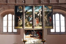 Die St.-Wolfgangs-Kirche in Schneeberg zählt zu den größten Hallenkirchen der Spätgotik im sächsischen Raum. Sie entstand zu Beginn des 16. Jahrhunderts und ist Ausdruck des damaligen Silberreichtums des Erzgebirges. Am 19. April 1945 wurde sie durch amerikanische Tiefflugbomber fast völlig zerstört und in vielen kleinen Schritten wieder aufgebaut. Als einzige Kunstwerke konnten elf der zwölf Tafeln des Cranach-Altars gerettet werden, die heute wieder im Flügelaltar zu sehen sind. Dieser Altar ist eines der umfangreichsten Werke der Malerfamilie Cranach.