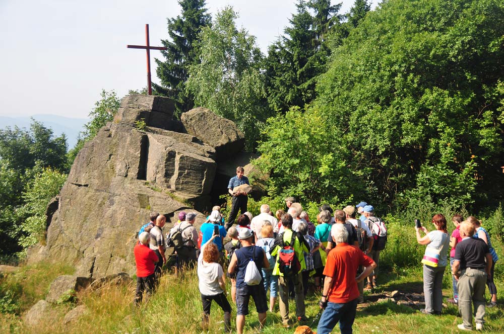 Zwei weitere Punkte waren noch im Programm: der Besuch der im Wald liegenden Gruft des Gründers der Mineralwasserfirma in Krondorf/Korunní und die Wanderung zum „Göttlfels“ mit seiner herrlichen Aussicht auf das Tal der Eger.