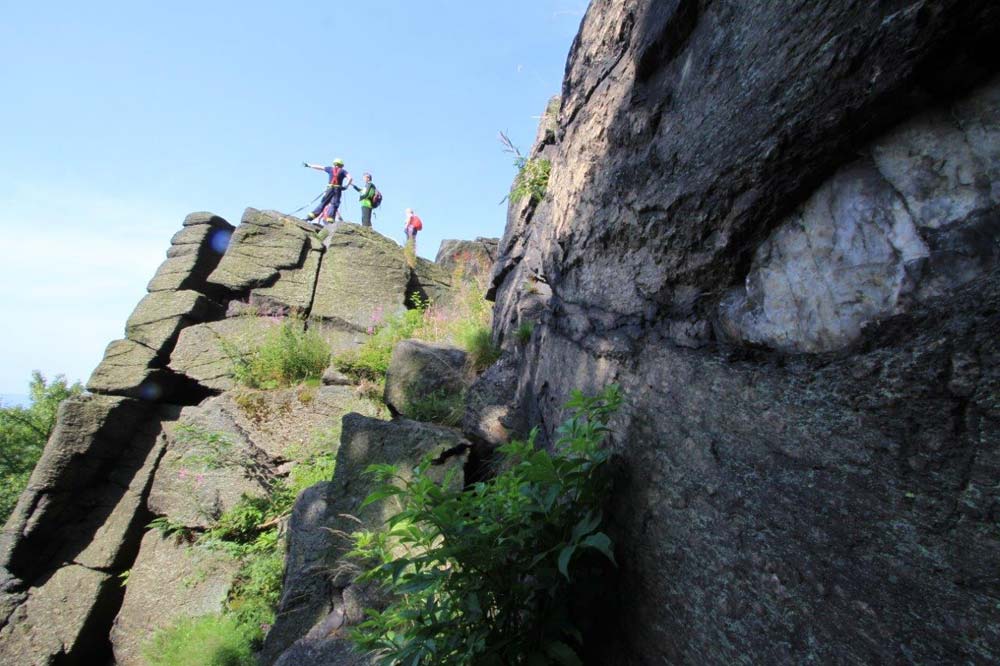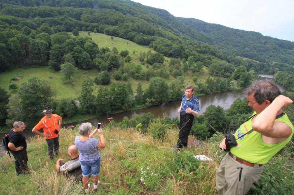Der erste Programmpunkt war der Besuch der markanten Felsformation Sphinx/Sfinga unterhalb des Kupferberges/Měděnec. Von dort hat man eine wunderbare Aussicht auf das Egertal und das Duppauer Gebirge. Geologische Erklärungen zu den Besonderheiten kamen dazu von Peter Rojik.