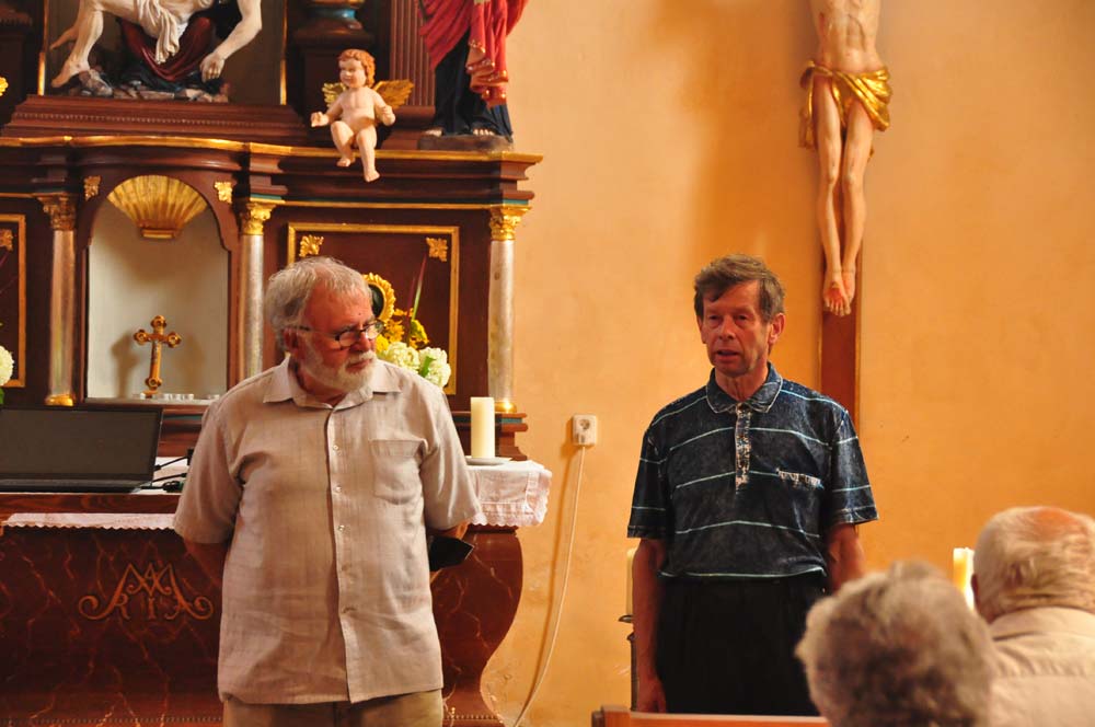 Danach besuchten wir wir in Wartha/Stráž nad Ohří die Kapelle zum Erzengel Michael. In der kleinen Kapelle trafen wir Vertreter der Gemeinde, die uns gemeinsam mit Peter Rojik, historische Details zur Gemeide Krondorf/Korunní (jetzt Ortsteil von Wartha) vermittelten. Insbesondere wurde auf das Buch der ehemaligen Einwohner Anna Ziener und Gernot Hilbert verwiesen (Gedenkbuch Krondorf), welches von Peter ins Tschechische übertragen wurde.