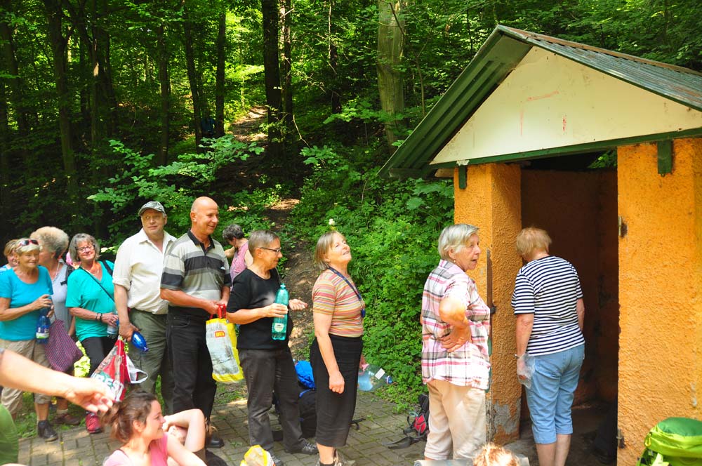 Als nächstes fand unsere Mittagspause statt. Diese führten wir traditionell als Picknick am Lagerfeuer auf dem Sportplatz durch. Nach der Pause wanderten wir zur nahe gelegen Mineralquelle (bekannt als Krondorfer Sauerquelle/ Korunní kyselka). Wir verkosteten das Wasser und füllten unsere Flaschen damit.