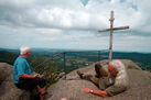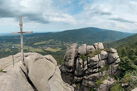 Wir stiegen von Ferdinandov und Hejnice zum 804m hohen Ořešník (Nussstein) auf. Dieser Aussichtsfelsen mit Gipfelkreuz ist zum Schluss über eine Eisenleiter zu erreichen. Wieder hatten wir Glück mit dem Wetter und konnten die herrliche Aussicht genießen. Nur der mäßig starke Wind machte den Aufenthalt etwas unangenehm. Über Stock und Stein stiegen wir wieder ab zum Stolbich-Wasserfall und gelangten steil absteigend hinunter ins Tal. Die Abschiedsmahlzeit im Gasthaus "U Cimpla" musste trotz Vorbestellung leider ausfallen, weil wir vor geschlossener Tür standen. So kehrte jeder auf eigenen Wegen nach Hause zurück.