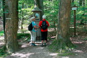Gleich nach der Ankunft starteten wir zu einem gemütlichen Spaziergang durch Straßen, Pfade und Schleichwege über Hejnice (Heinsdorf) nach Bad Liebwerda. Hier konnten wir am Mineralbrunnen vom schmackhaften Wässerchen kosten und unsere Trinkflaschen auffüllen. Dann machten wir uns wieder auf die "Socken", durch einen kleinen idyllischen Kurpark, zu einem Besuch in einer Strumpf- und Sockenstrickerei und zum Restaurant Obří sud (Riesenfass). Von hier aus hat man eine herrliche Aussicht ins Gebirge. Nach einer Stärkung teilte sich die Gruppe. Manche nahmen den direkten Weg zur Pension. Der Rest lief über einen Waldweg zur Hubertusbaude und genoss die schöne Aussicht vom ca. 300 m unterhalb gelegenen Katzenstein (Kočičí kameny). Eine Stärkung mit Kräutern in flüssiger Form brachte uns beschwingt mit frischer Kraft über Bílý Potok und Hejnice zurück zur Pension, wo der Abend nach einer leckeren Mahlzeit ausklang.