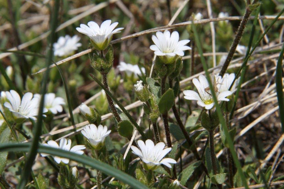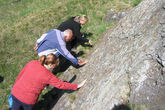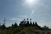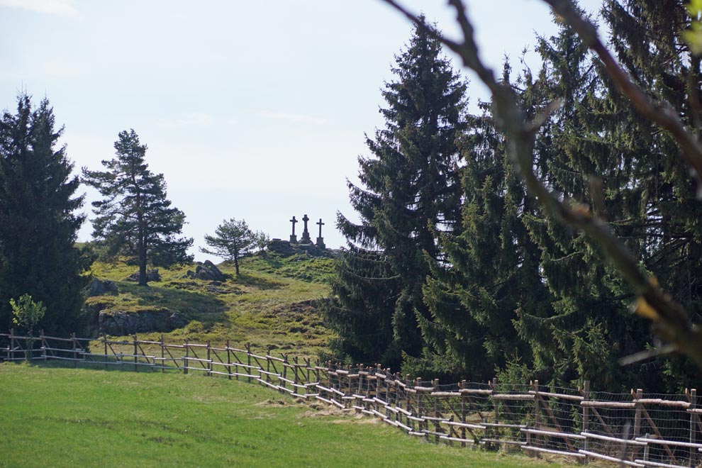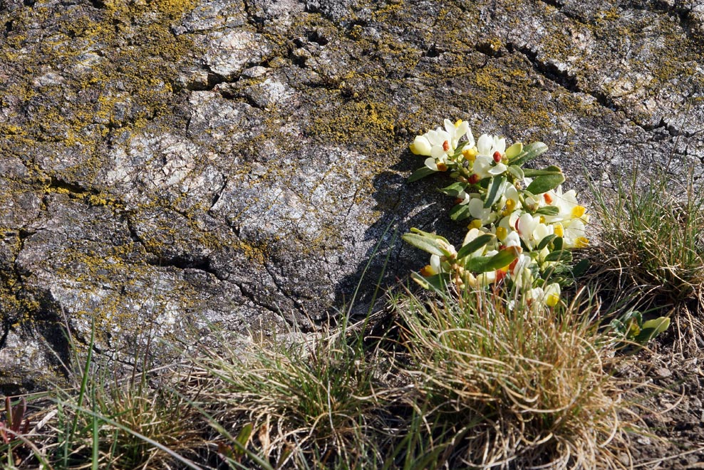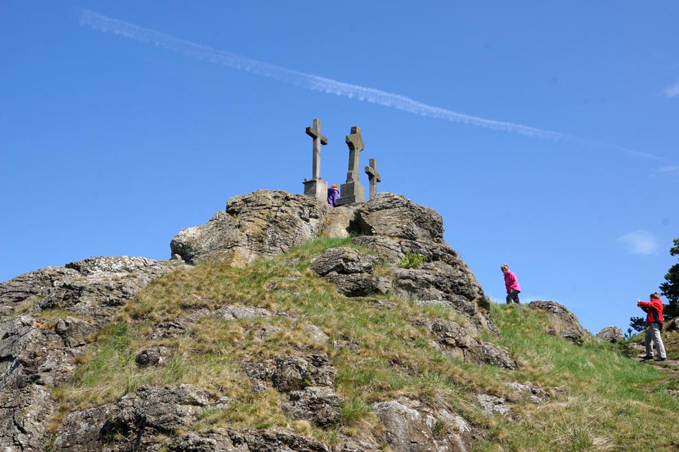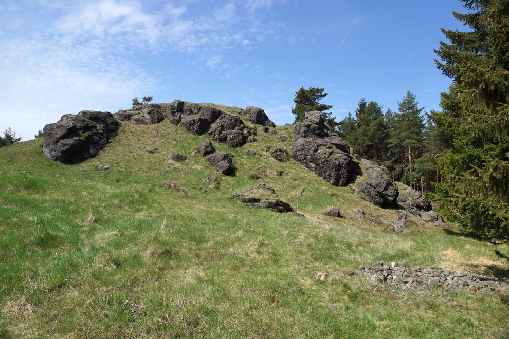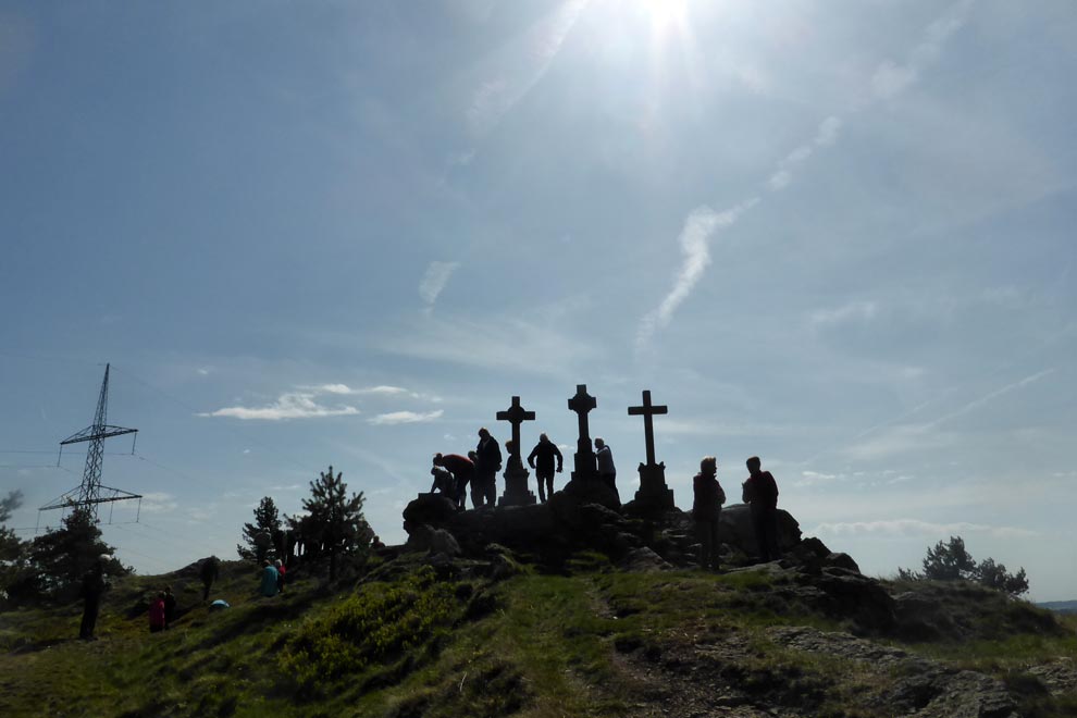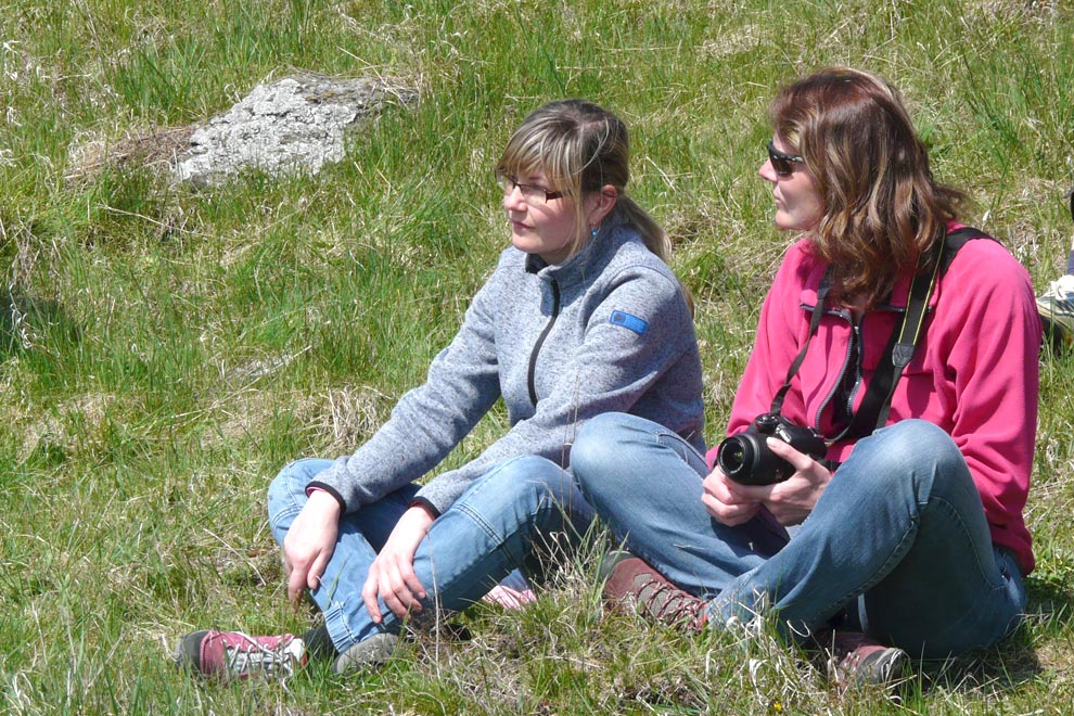 Aus dem Egertal führte uns eine romantische Straße bis auf etwa 800 m Höhe auf das Hochplateau des Kaiserwaldes. Bald war unser erstes Ziel erreicht. Eine Felsgruppe aus Serpentinit mit drei Steinkreuzen auf dem Gipfel. Serpentinit, das Thema unserer Wanderung, ist ein Gestein aus den Tiefen des Erdinneren, das bis an die Oberfläche durchgedrungen ist. Durch die Zusammensetzung der Mineralien finden wir spezielle Pflanzen, die es nur hier im Kaiserwald gibt. Für jeden der Teilnehmer war etwas Schönes zu finden. Die eine Gruppe erfreute sich ganz einfach an der Felsformation, an der strahlenden Frühlingssonne und dem weiten Blick über die Hochebene. Unsere Fotografen lagen bald auf dem Bauch vor den Blümchen und die Botaniker diskutierten über die Flora.