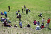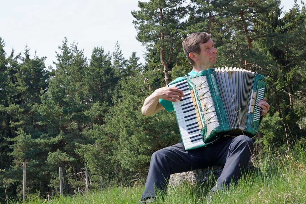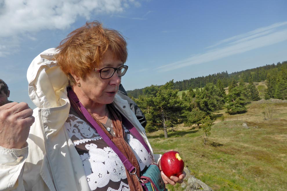 Unsere Fahrt ging weiter zum Naturdenkmal Dominova skalka. Dr. Petr Rojik lud aus dem Bus einen Teil seiner Mineraliensammlung aus. Auf seine humorvolle Art nahm er uns mit in die Unterwelt, wo diese Gesteine ihren Ursprung hatten. Danach erkletterten wir den dortigen Serpentinit-Felsen und bestaunten die Pflanzenwelt. Am Fuße des Felsens holte Petr Rojik sein Akkordeon hervor und spielte uns einige einheimische Weisen.