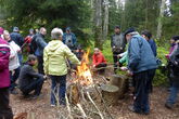 Am Fuße des 670 m hohen Felsmassivs taten wir es Goethe gleich und ließen uns bei einem Picknick am Lagerfeuer die mitgeführten Speisen und Getränke schmecken. Mit zünftiger Mundharmonikamusik ging es dann zurück zum Ausgangspunkt unserer Wanderung.