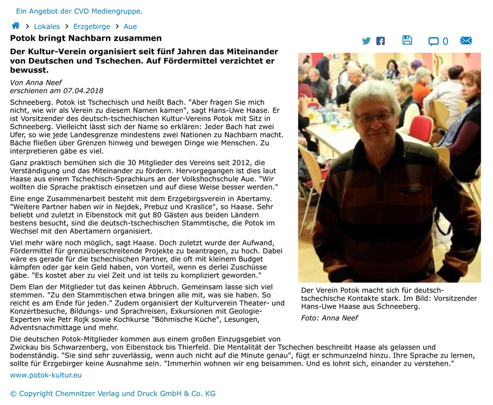 Artikel in der "Freien Presse" am 07.04.2018 von Anna Neef.