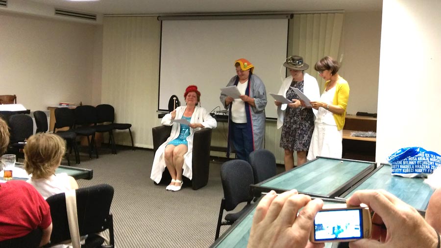Auch die nachmittäglichen Ausflüge waren wieder sehr gut organisiert. So waren wir zum Beispiel in Pilsen, dieses mal nicht in der Brauerei, sondern in der Ausstellung des Malers Gustav Lindauer und im Schloss in Chyse. Die Sonne hat es etwas zu gut mit uns gemeint, so dass auch der Hotel eigene Pool reichlich genutzt wurde. Allabendlich saßen wir gemütlich bei einem Gläschen Wein und bei mehr oder weniger gutem Gesang zusammen. Ein Höhepunkt war der Auftritt der Band Inspirio aus Pisek, die mittlerweile auch schon zu unseren guten Bekannten zählt und wie jedes Jahr für viel Spass und gute Stimmung gesorgt hat.